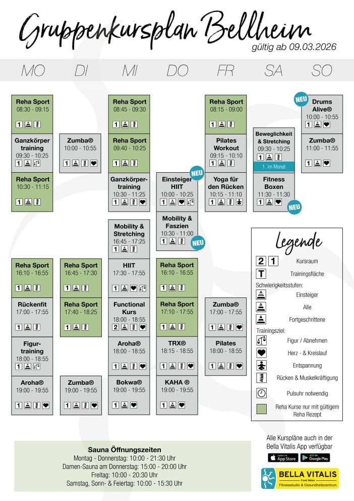 Das kostenlose Probetraining gilt nur für Personen, die noch kein Mitglied im Bella Vitalis waren. Ab 16 Jahren.