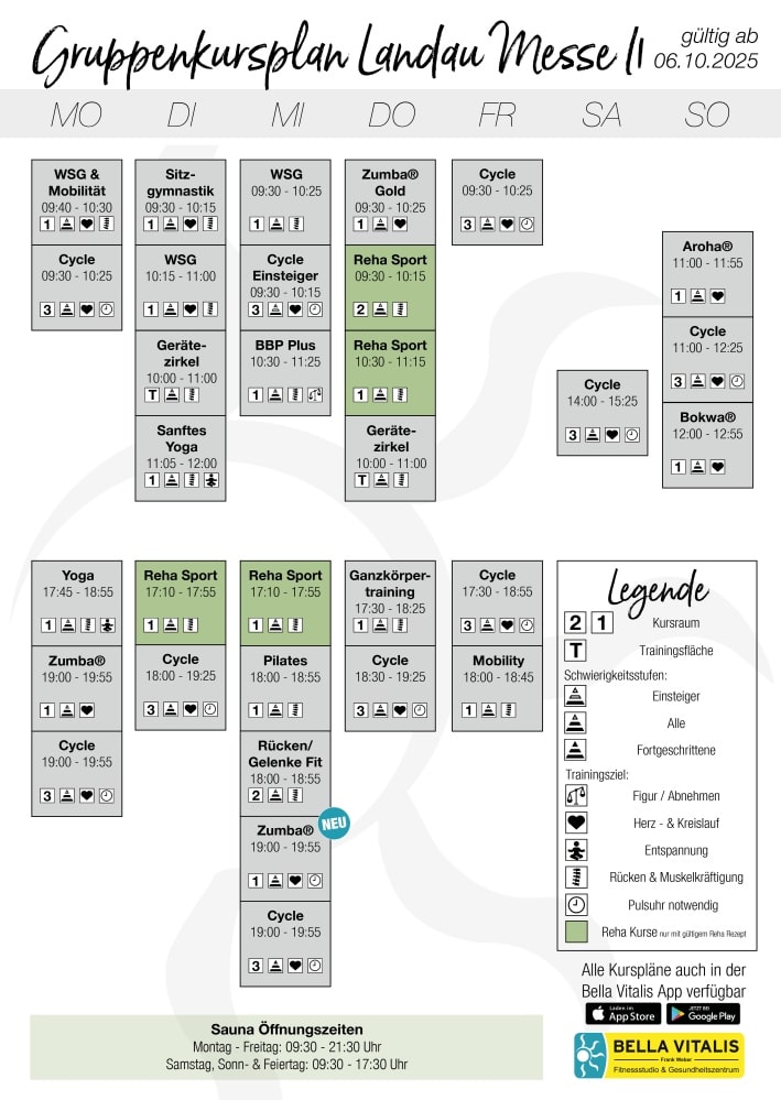 Das kostenlose Probetraining gilt nur für Personen, die noch kein Mitglied im Bella Vitalis waren. Ab 16 Jahren.